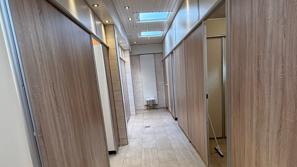 Das Duschhaus sind sehr modern, einzelne Duschen oder auch gemischte, bzw. Familienduschen, mit geräumiger Kabine mit Regenwalddusche und extra Waschbecken, dass für eine entspannende Atmosphäre sorgt. Sogar eine Badewanne für Babys ist vorhanden. Das Duschhaus ist sauber gehalten und wird regelmäßig gewartet, um die Hygiene der hohen Standards zu gewährleisten. Desinfektionspender stehen ebenfalls zur Verfügung. Zusätzlich gibt es ausreichend Platz, um persönliche Gegenstände bequem abzulegen, und große Spiegel, die den Raum optisch vergrößern.